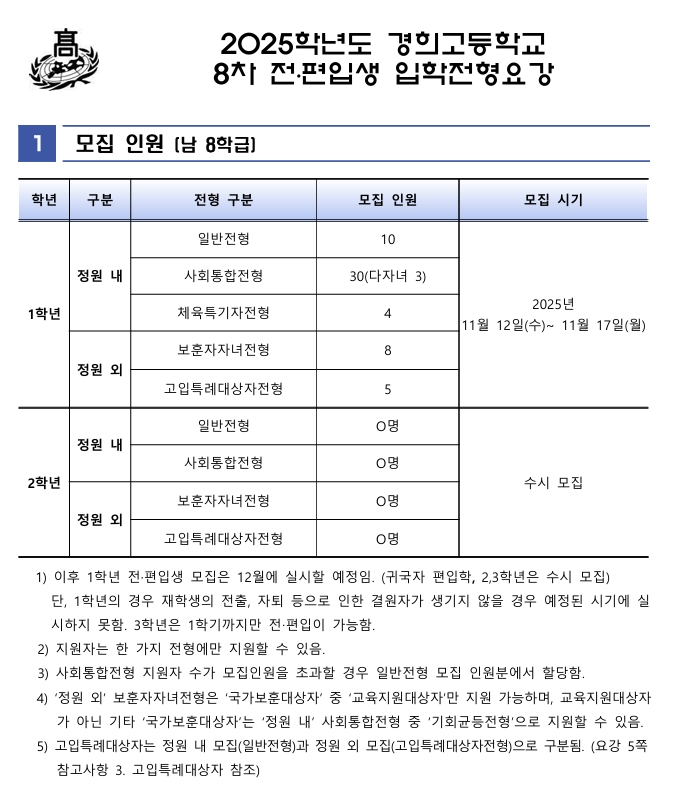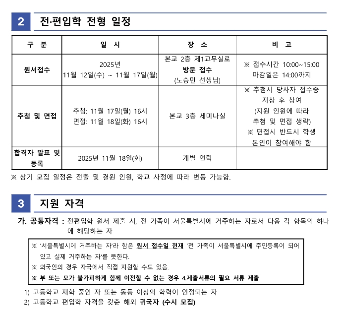 2025학년도 8차 전편입 모집 안내(11.12.~11.17.)