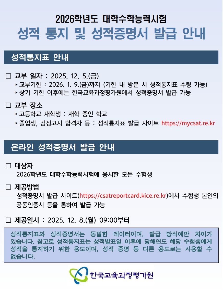 (졸업생)수능성적표 발급안내