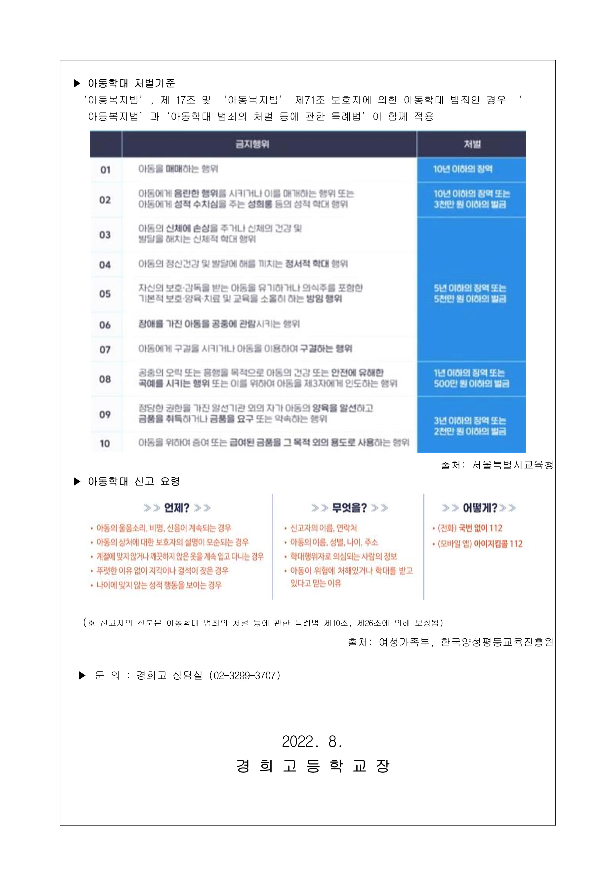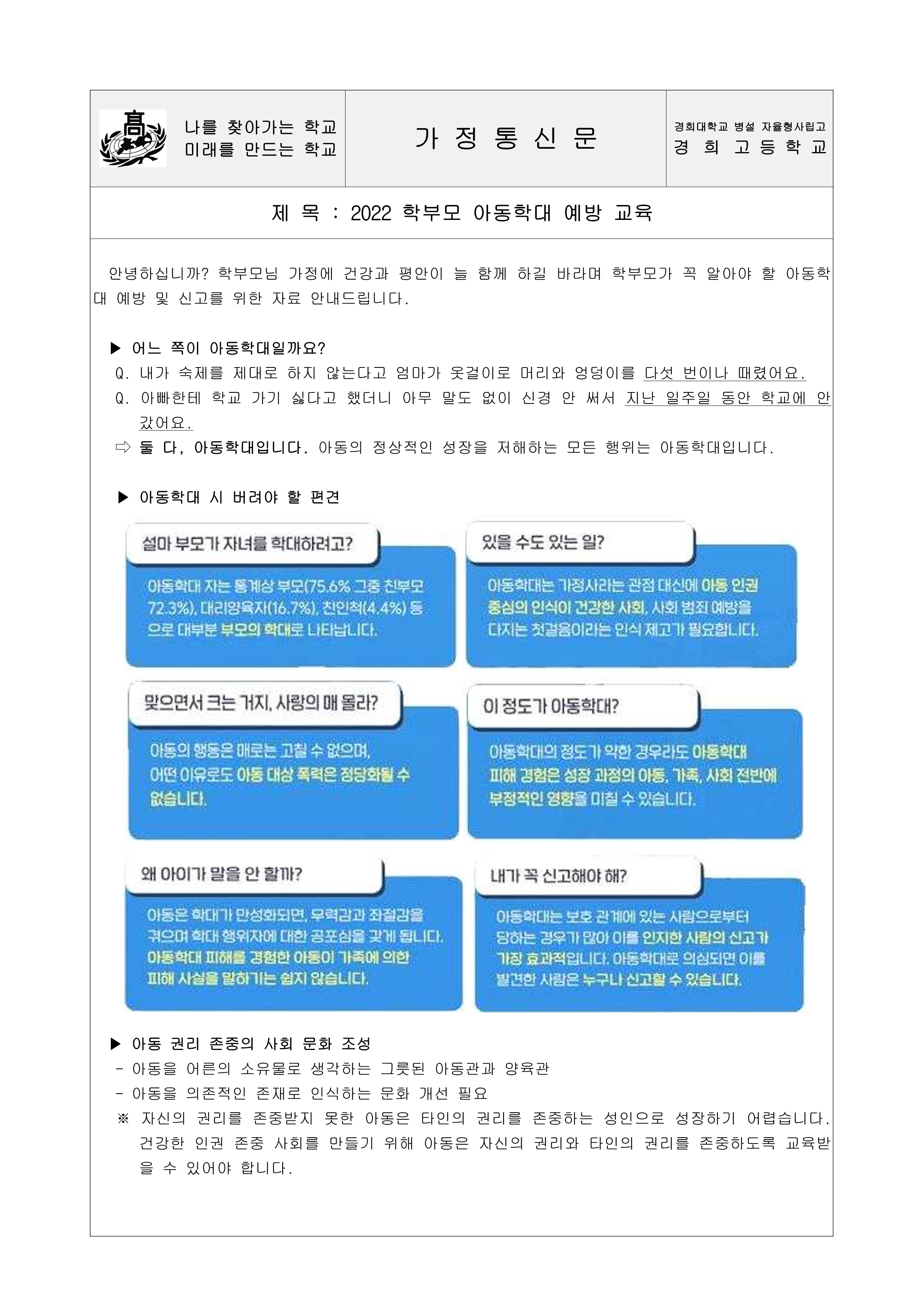 2022학년도 학부모 아동학대 예방교육 가정통신문