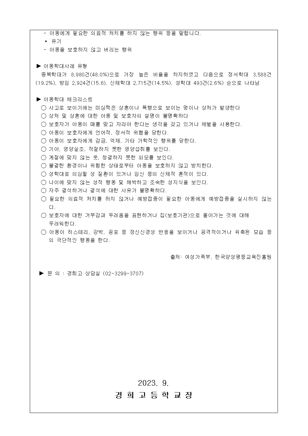 2023학년도 학부모 아동학대 예방교육 안내