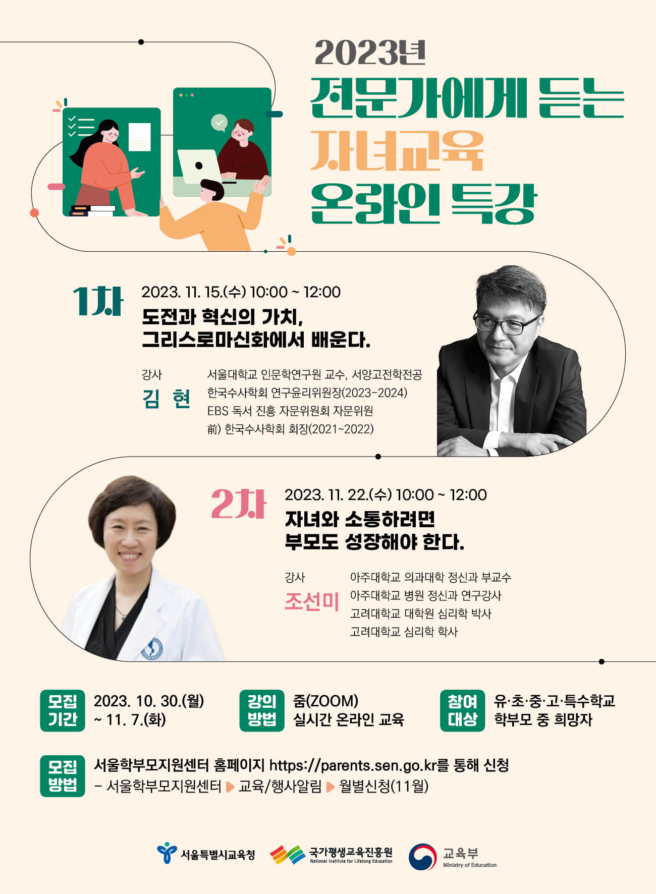 "2023년 전문가에게 듣는 자녀교육 온라인 특강" 참여자 모집 안내