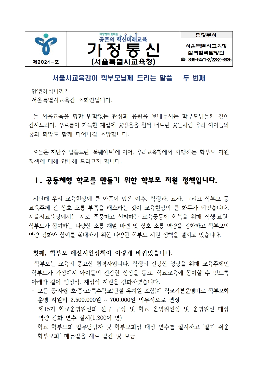 - 「서울시교육감이 학부모님께 드리는 말씀-두번째」 가정통신문001.jpg (690.2KB) (0)