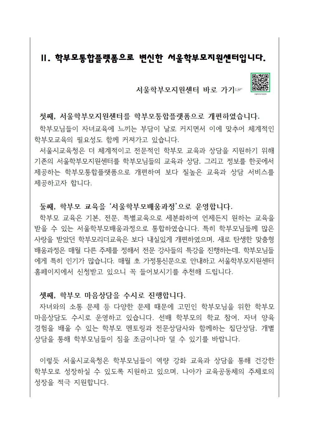 「서울시교육감이 학부모님께 드리는 말씀-두번째」