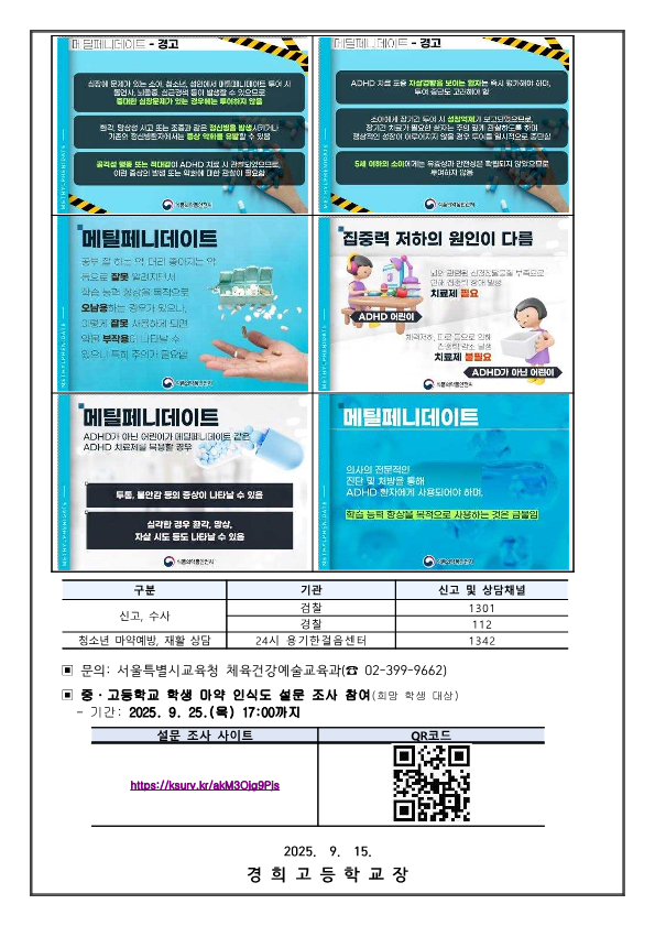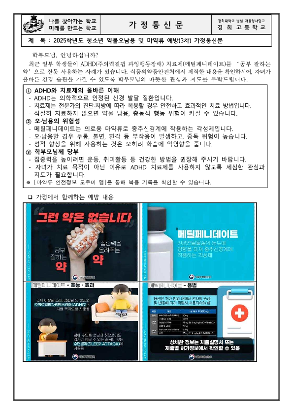 2025학년도 청소년 약물 및 마약류 예방(3차) 가정통신문