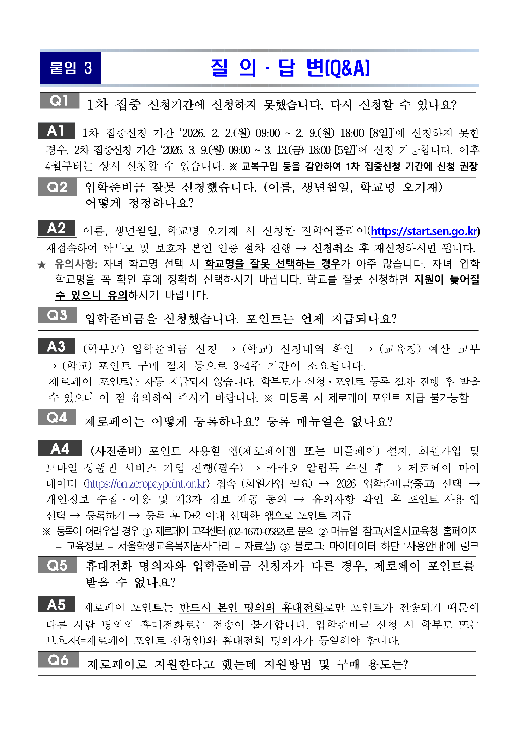 입학준비금 사용 유의사항 안내