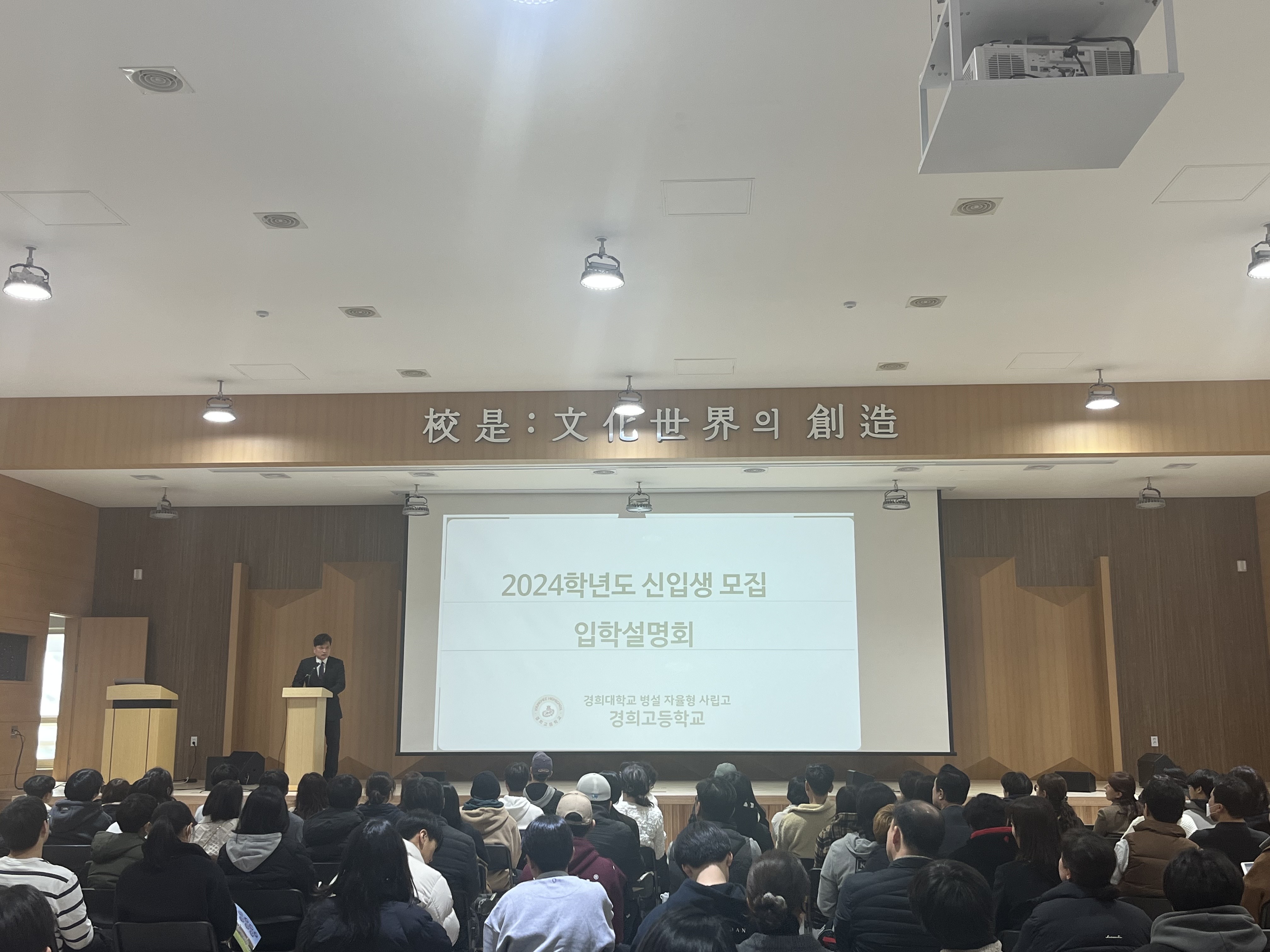 마지막 4차 입학설명회는 11/25(토) 14:00 경희고등학교 4층 강당에서 진행합니다.