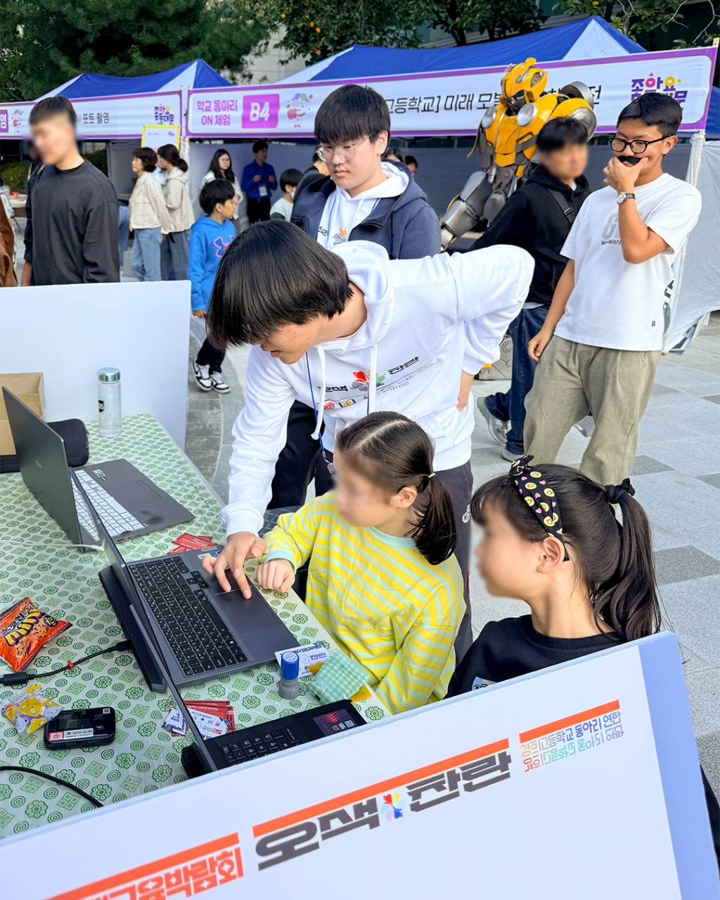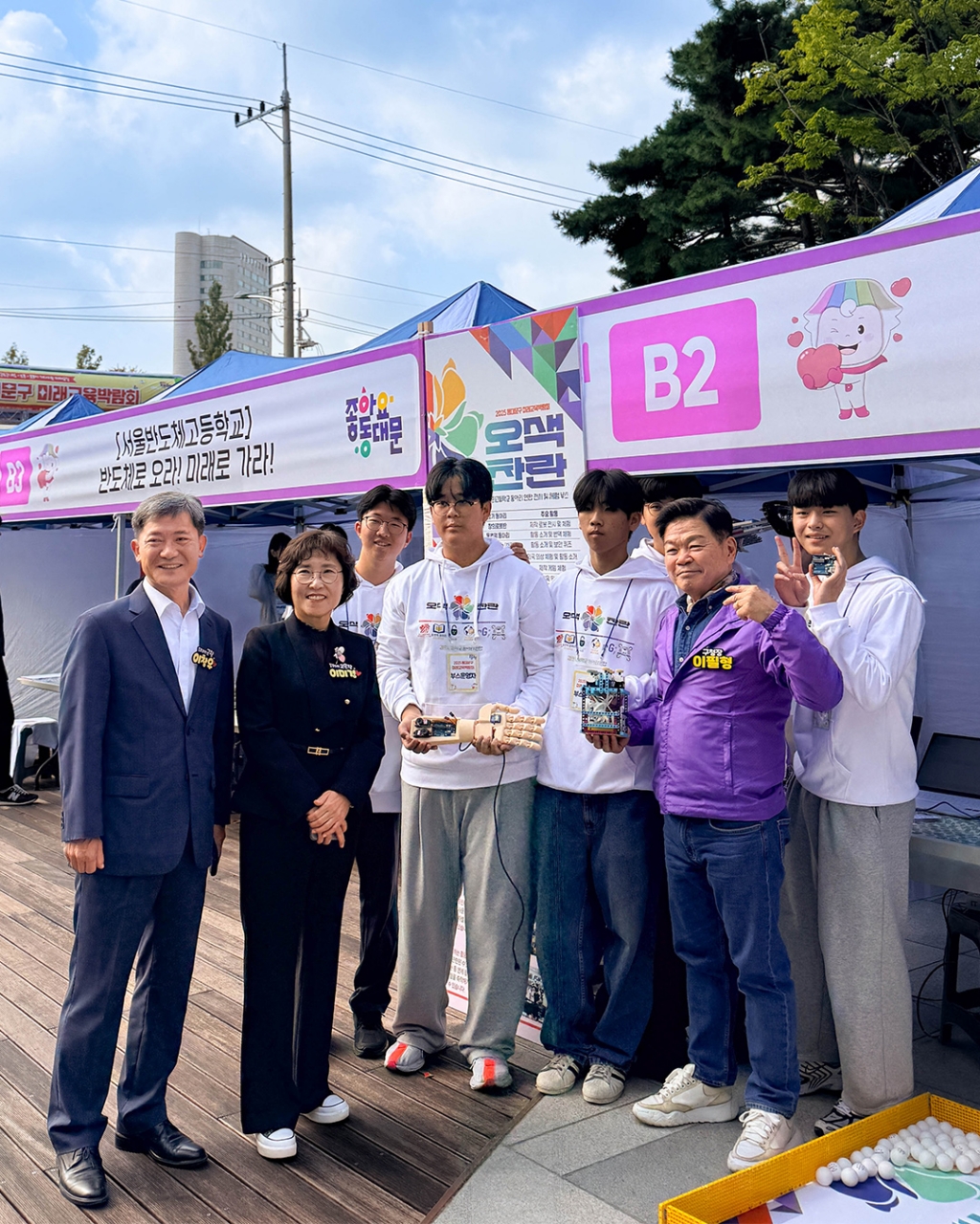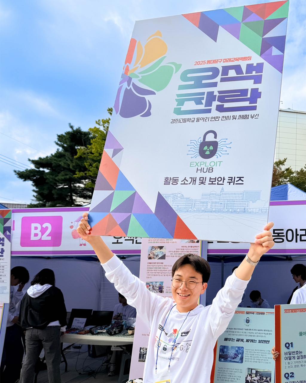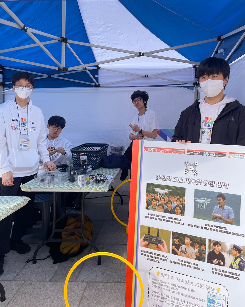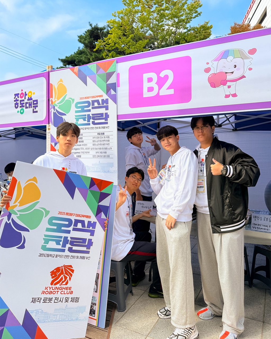 10월 25일 동대문구청 앞 광장에서 2025 동대문구 미래교육박람회가 개최되어 동대문구에서 지원하는 미래교육 경험을 제공하고, 미래사회에 필요한 역량을 체험하는 기회를 가졌습니다. 학생들의 주체적인 노력과 여러 지원 속에 성장하는 경희고등학교 6개 스타트업 동아리(창의로봇반, 통번역 동아리, Exploit Hub, Global Agora, return game;, 드론반)도 이번 행사에 '오색찬란'이라는 동아리 연합 형태로 참가하여 학생들이 경영하는 동아리를 소개하고, 어린이, 청소년을 대상으로 동아리 활동을 재능기부하는 시간을 가졌습니다.