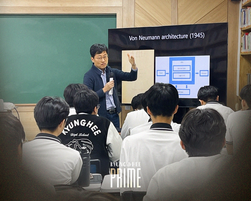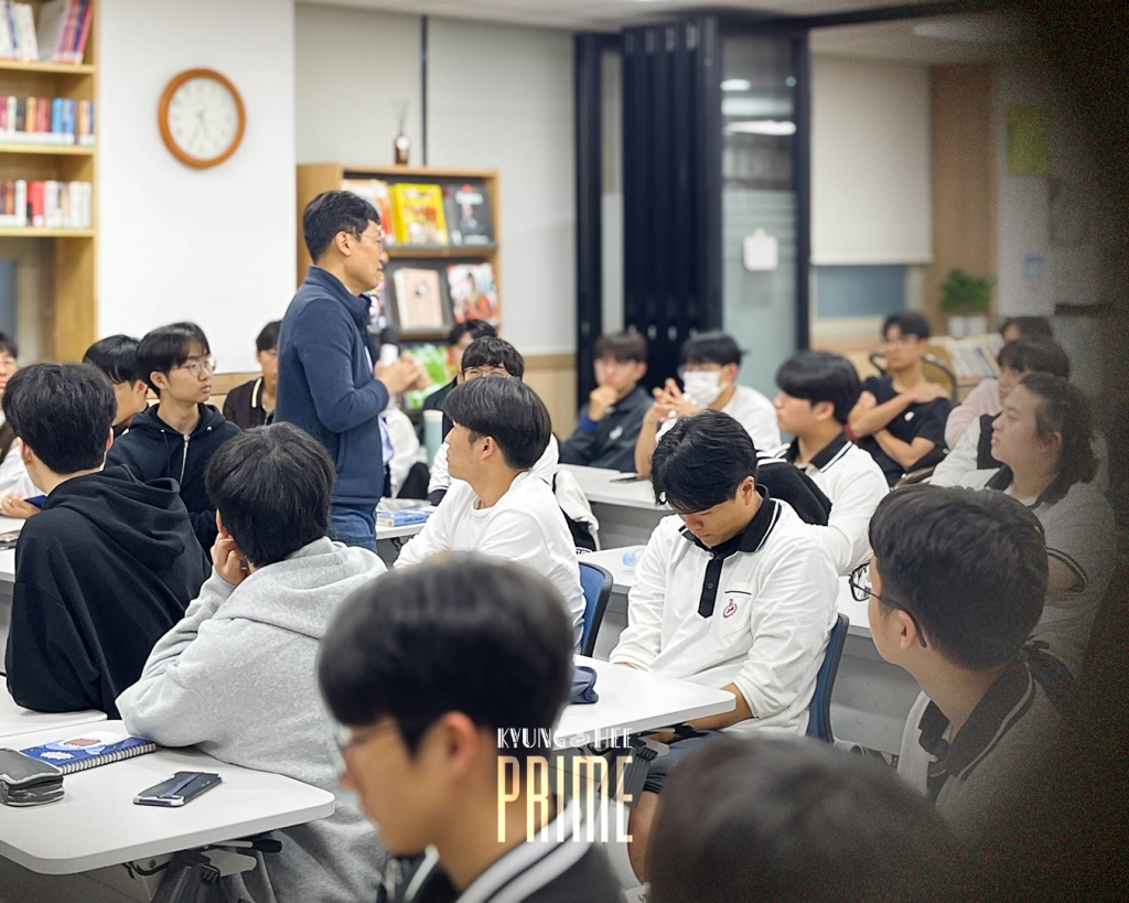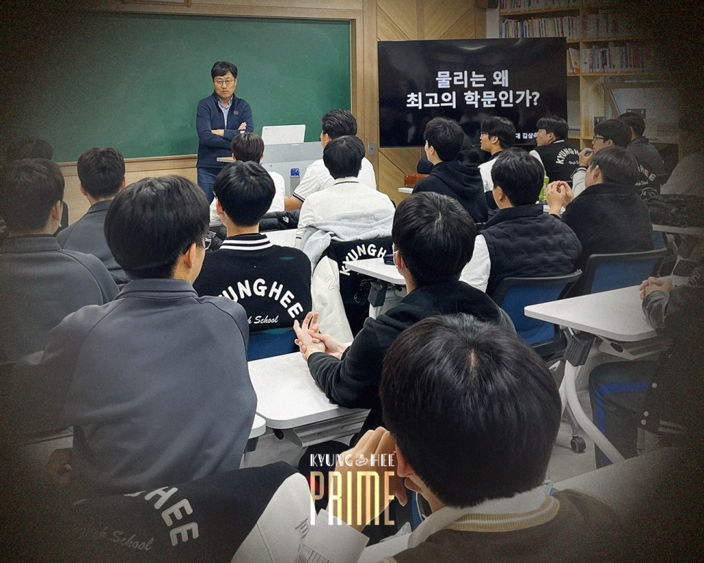 경희고등학교에서는 11월 4일(화) 방과후를 활용하여 4번째 PRIME 특강을 개최하였습니다. 이번 특강은 다정한 물리학자, 경희대학교 물리학과 김상욱 교수님께서 '물리는 왜 최고의 학문인가?' 라는 주제로 강의하셨습니다. 물리학의 등장부터 현황, 양자역학과 통계역학에 이르는 학생들이 마주하게 될 물리학에 대해 강연해주시고, 미래의 물리학자, 과학자로서 학생들에게 거듭나길 당부하는 말씀도 전달해주신 소중한 시간이었습니다.