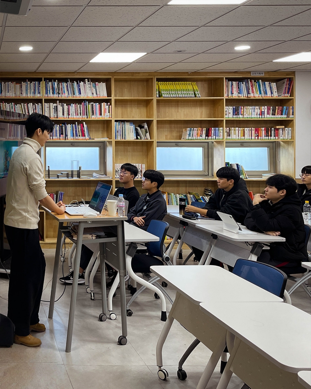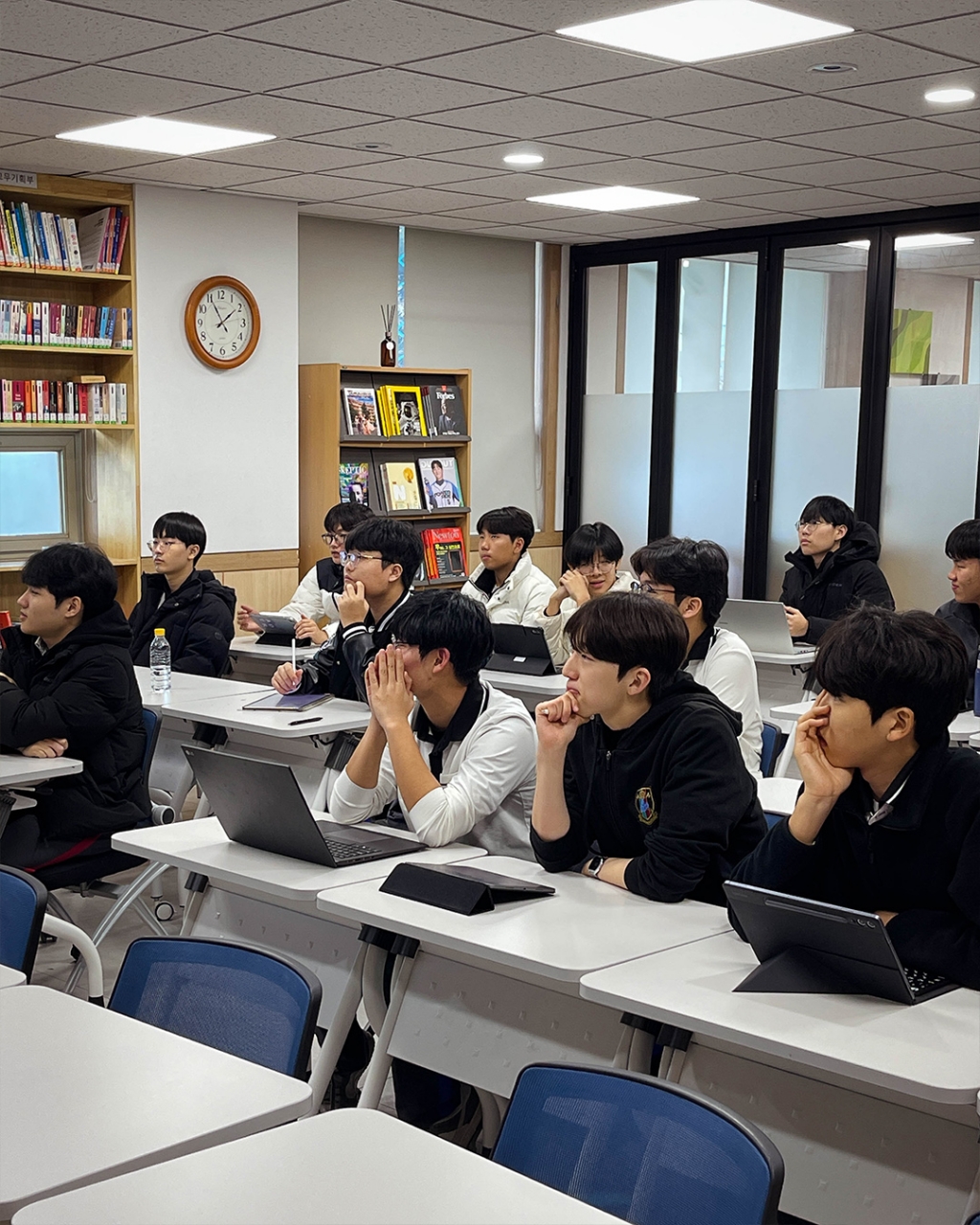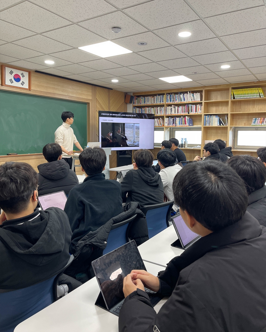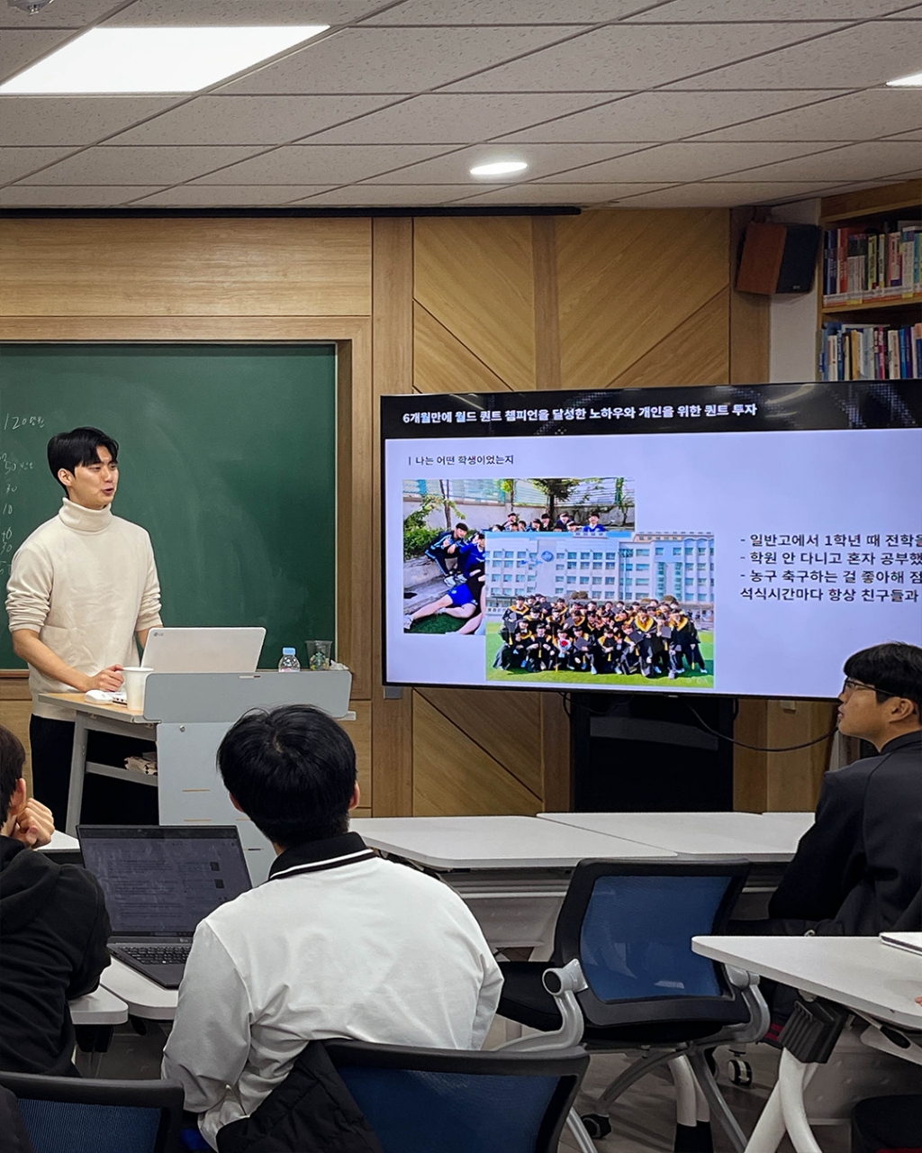 경희고등학교에서는 12월 22일 기말고사 이후 기간을 활용한 졸업생 특강을 진행하였습니다. 첫 특강 진행자로는 올해 세계 퀀트 챔피언십에서 한국인 최초 글로벌 챔피언을 차지한 UNIST 재학생 김민겸 님(58회 졸업생)이, 두번째 특강은 고려대학교 수학과에 재학 중인 안태규 님(60회 졸업생)이 수학 진로 특강을 진행했습니다. 대학에 진학한 선배들을 통해 학생들은 고등학교에서 목표로 하는 진로 계획이 대학에서 어떻게 확장되는지 가늠해보고, QnA를 통해 본인의 진로 및 학업 계획을 구체화하는 시간을 가졌습니다.