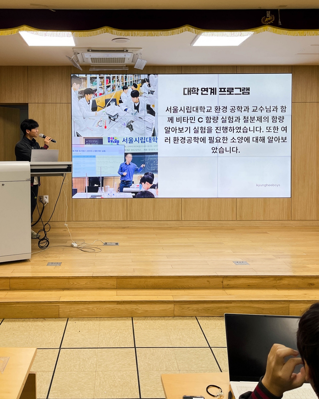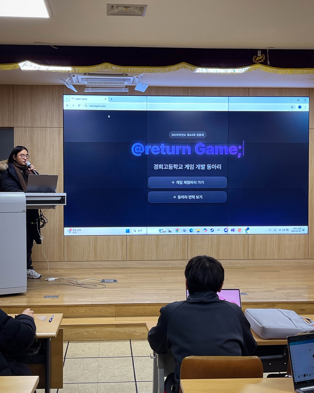 경희고등학교에서는 2025학년도 한 해 운영된 스타트업 동아리를 대상으로 동아리 운영 경험과 운영 과정에서의 성장을 발표하는 우수 동아리 경영 사례 발표회를 진행하였습니다. 올해 우수 동아리(3개)로는 창의로봇반, 인터스텔라, return Game;(게임개발부)이 선정되었습니다. 3개 팀 외에 나머지 모든 동아리도 처음 정립된 동아리 시스템에도 불구하고 다양한 경험을 얻었고, 괄목할 만한 성장을 보였습니다.